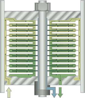 碟管式膜技術(shù)簡稱 DT, 常見為DTRO和DTNF, 它的膜組件構(gòu)造特殊。DT膜組件采用高強度,耐壓設(shè)計,能夠克服更高的滲透壓,帶有凸點的導流盤形成獨特的開放式流道,對預(yù)處理要求低,提高了膜抗污染能力,清洗更徹底,延長膜使用壽命。